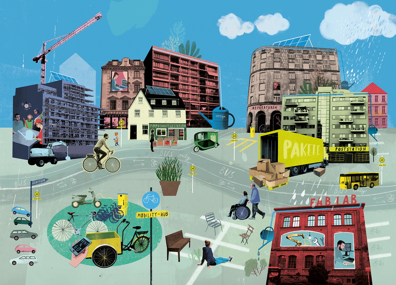 Rinah Lang studied illustration in Groningen, the Netherlands, and in Edinburgh, Scotland. She has been working as a freelance illustrator in Berlin since 2000 - preferably in atelier communities. Rinah combines various techniques in her illustrations: she draws, prints and creates collages.