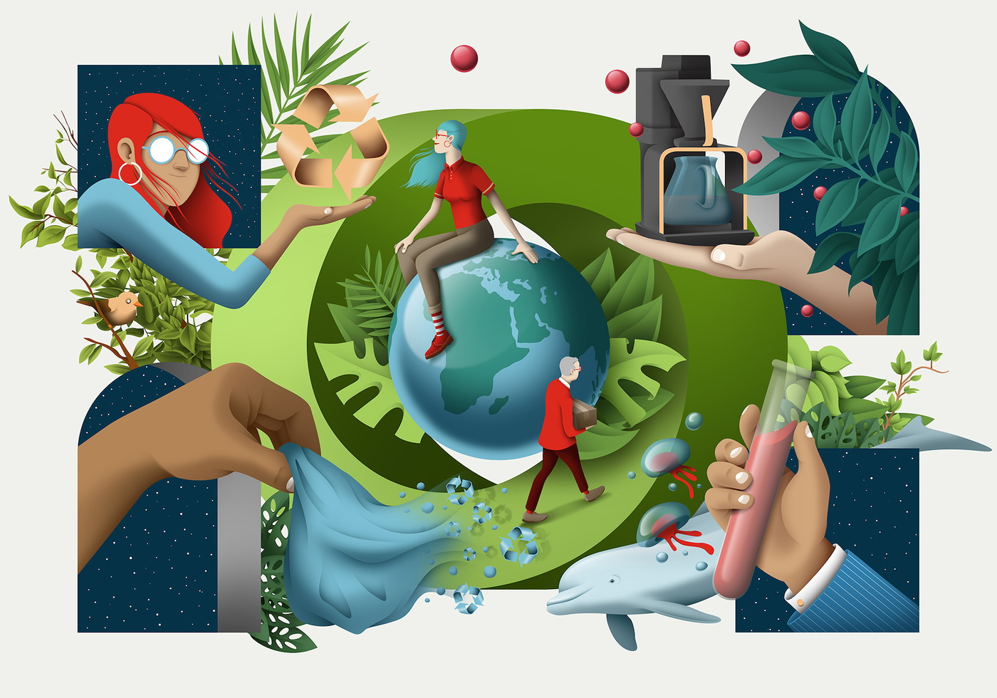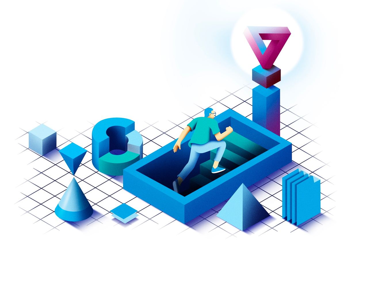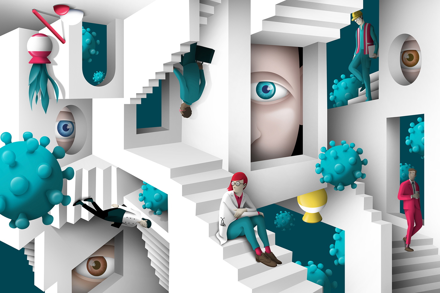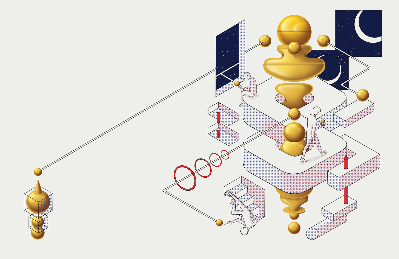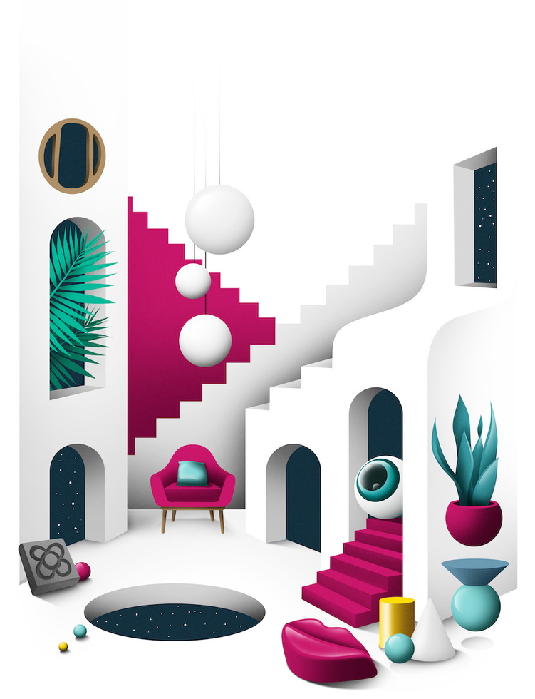 DAQ is an image-maker duo specialized in illustration and art direction for every type of media. They create visual content to turn ideas into stories. Their pieces are marked by love for geometry, volumetric shapes and contrasting colors. They enjoy playing with volumes and impossible shapes suggesting illusions and surreal situations. The studio based in Barcelona and founded by David Acevedo and Anna Miracle works for local and international brands, publishing and advertising companies. DAQ make images for a wide range of clients and fields like ads, animation videos, book covers, magazines, posters and objects.