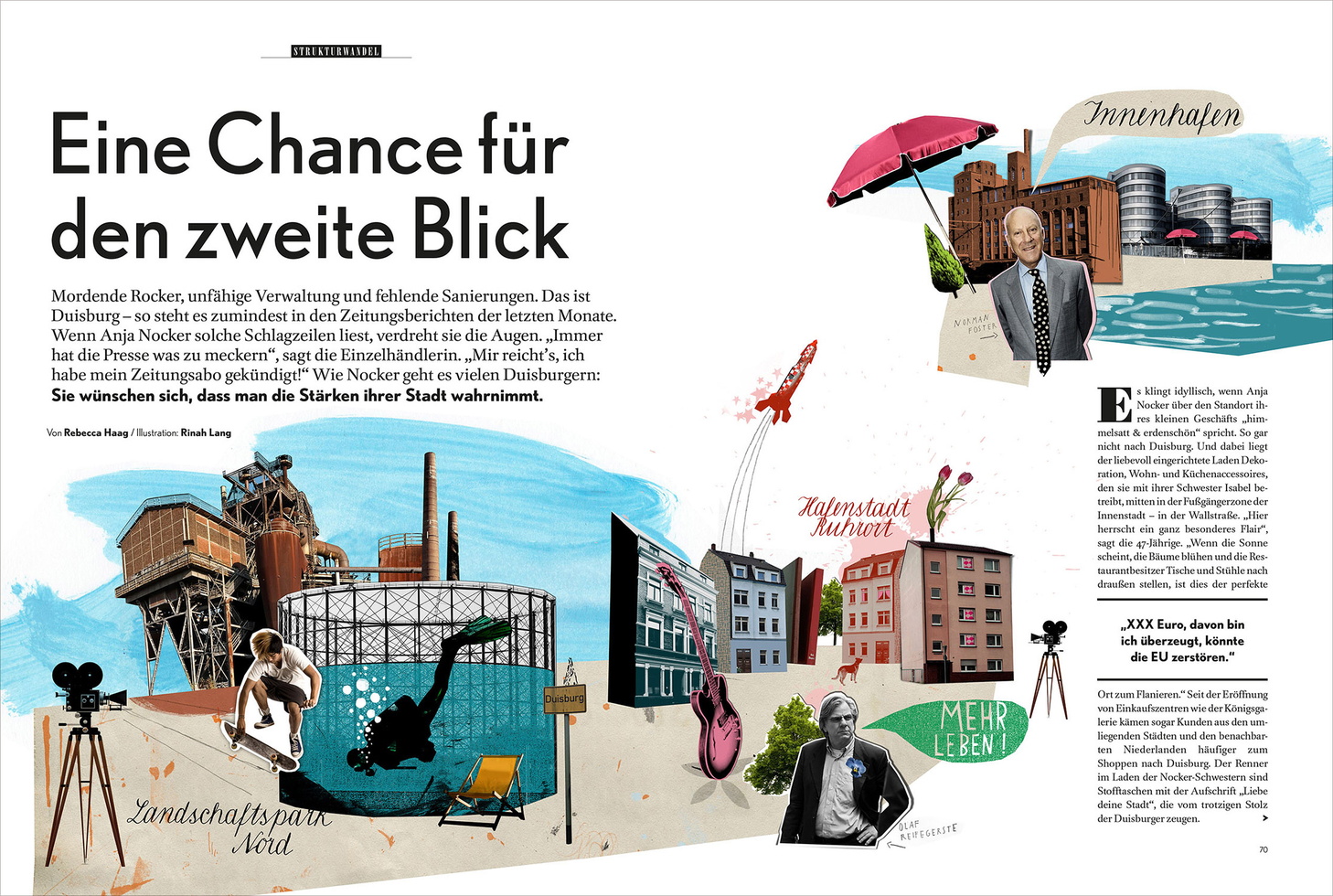 Rinah Lang studied illustration in Groningen, the Netherlands, and in Edinburgh, Scotland. She has been working as a freelance illustrator in Berlin since 2000 - preferably in atelier communities. Rinah combines various techniques in her illustrations: she draws, prints and creates collages.