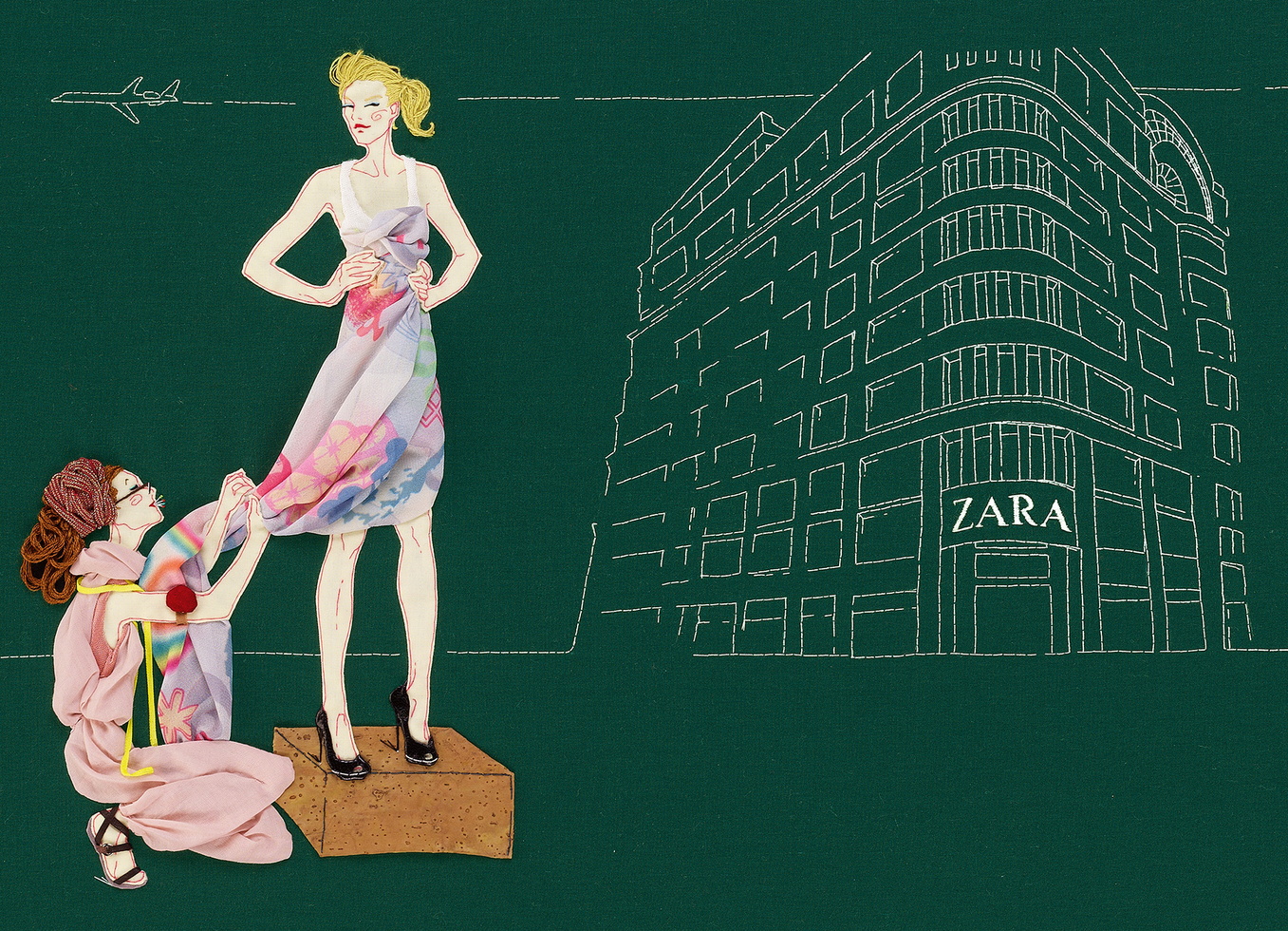 Paula Sanz Caballero lives and works in Valencia, Spain. After studying painting at the University of Valencia and completing a master’s degree in graphic design she began her career as a painter. In the late 1990s she experimented with materials and embroideries and ultimately replaced the medium of paint with textile techniques. She soon made a name for herself in the world of illustration with her unique style.